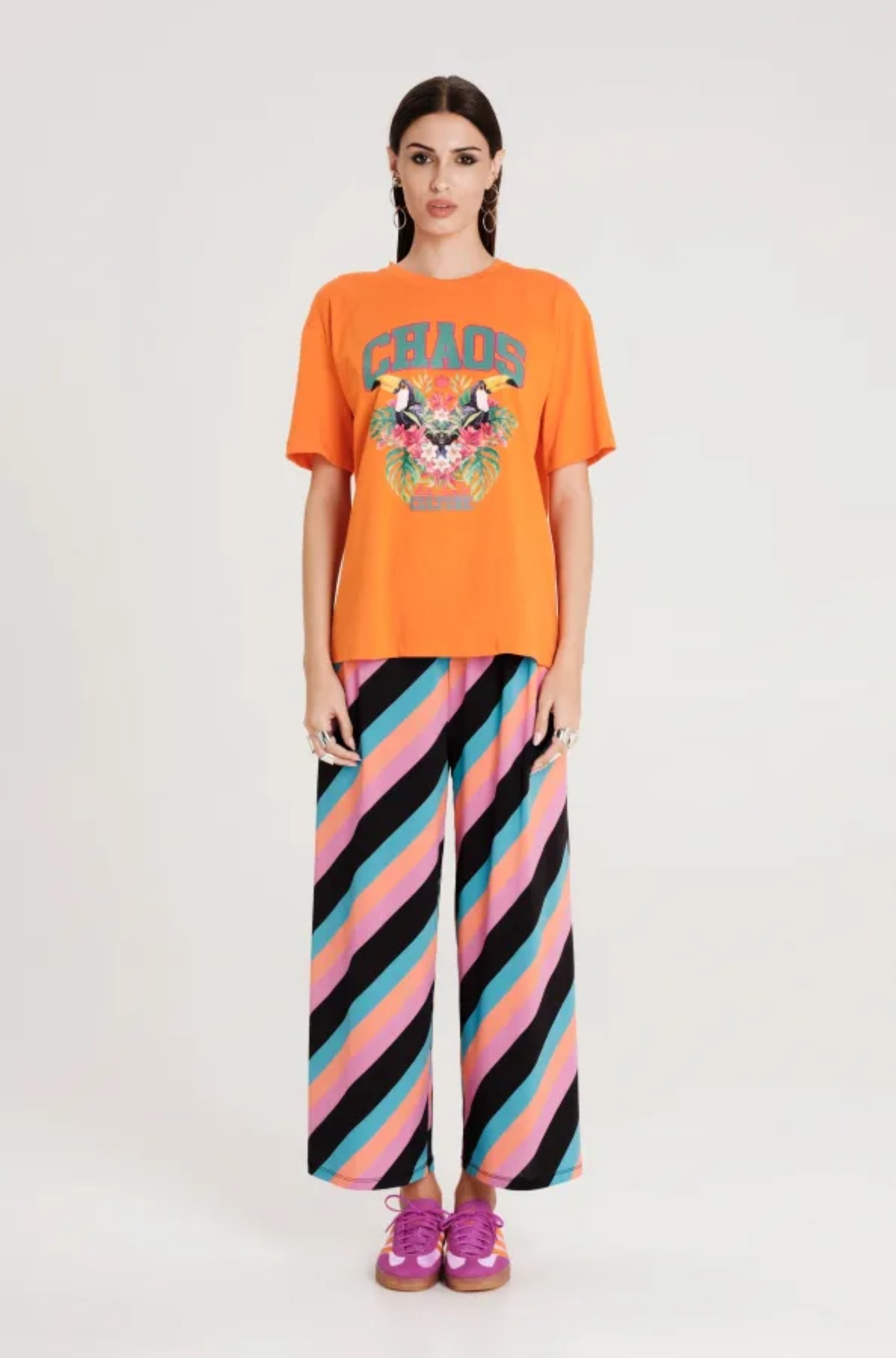 - Πορτοκαλί t-shirt με σχέδιο στο μπροστινό μέρος.